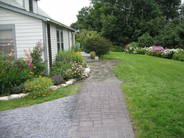 Client criteria: use irregular shaped local stone to build a walkway from driveway to front porch